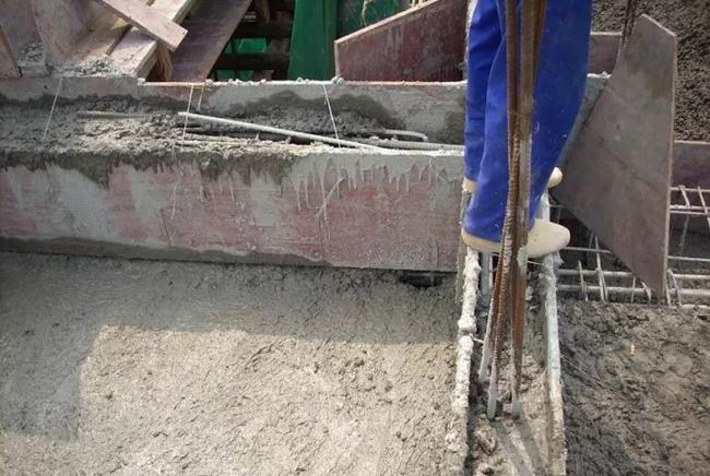 ?、陧耪駬v不當(dāng),從上面向下振,或振搗不到位,踏步根部孔洞、露筋。