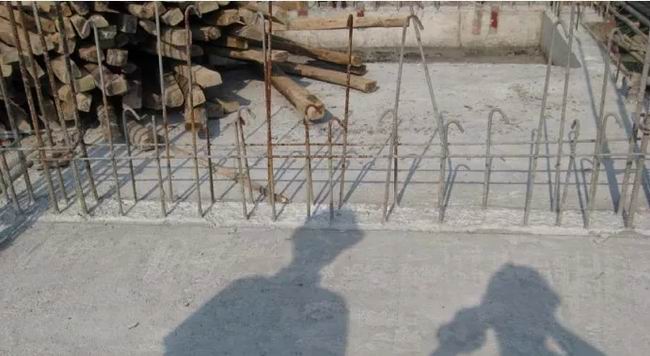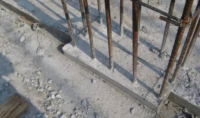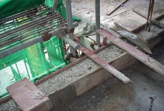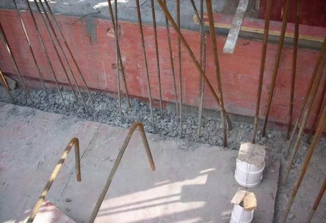 ?、賶χ艥仓?,根部沒有先放入50厚左右的同配比砂漿或減半石子砼。