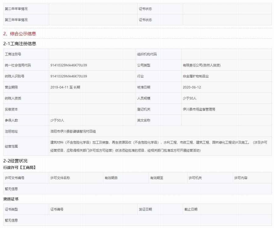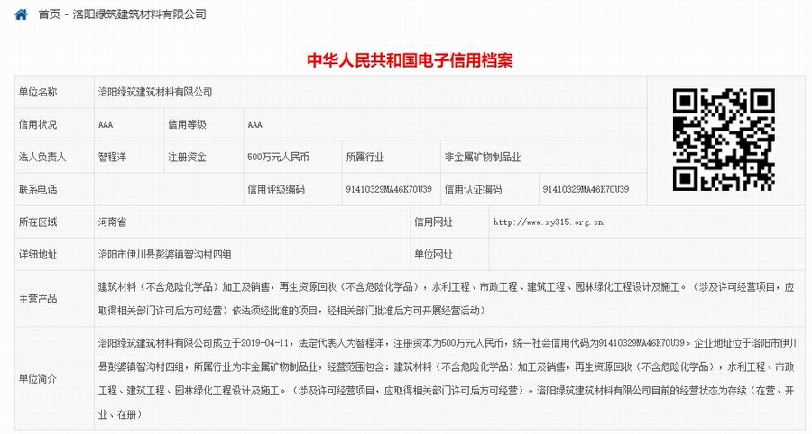 洛陽(yáng)綠筑建筑材料有限公司電子信用檔案