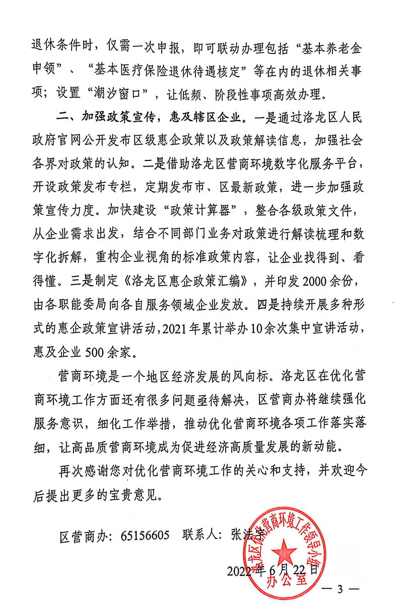 洛龍區(qū)優(yōu)化營商環(huán)境工作領(lǐng)導(dǎo)小組辦公室對區(qū)政協(xié)十屆一次會議第146號智程洋委員提案的答復(fù)