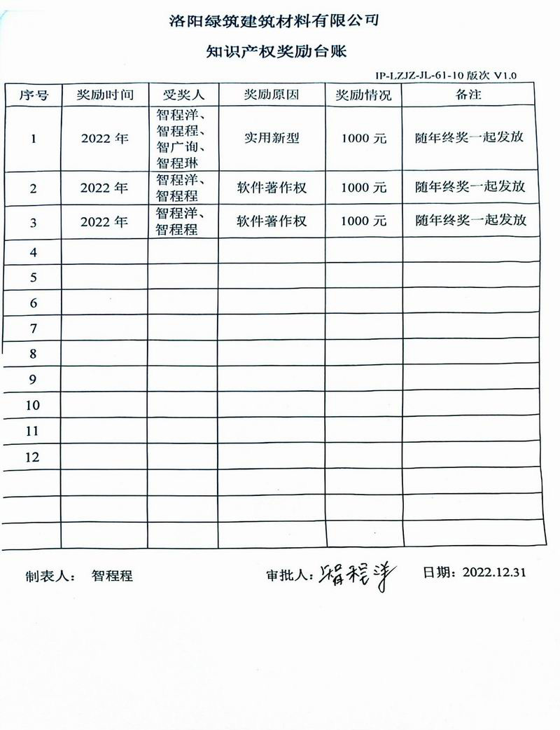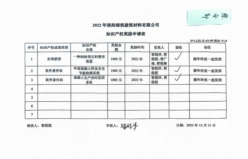 綠筑建筑知識產(chǎn)權(quán)獎勵申請表