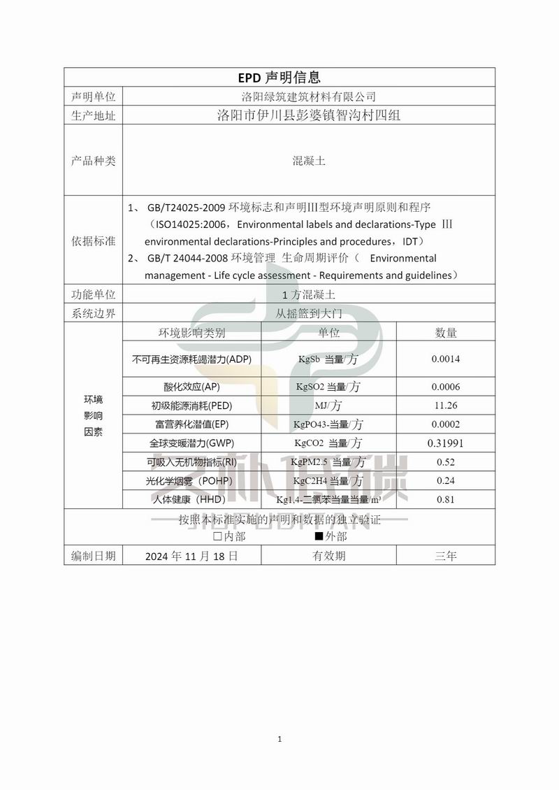洛陽綠筑建筑材料有限公司-碳足跡報告