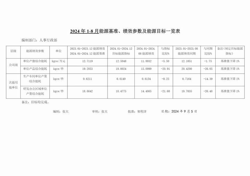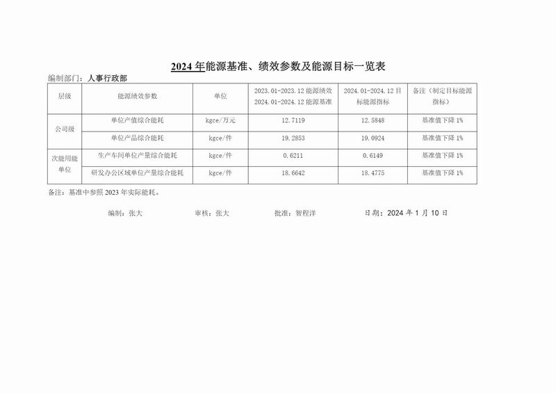 2024年能源基準績效參數(shù)及目標及監(jiān)控表