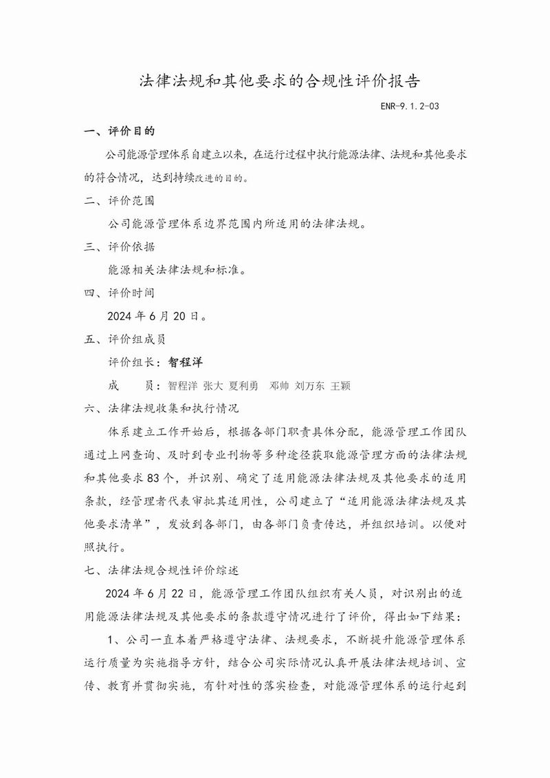 法律法規(guī)和其他要求的合規(guī)性評價報告