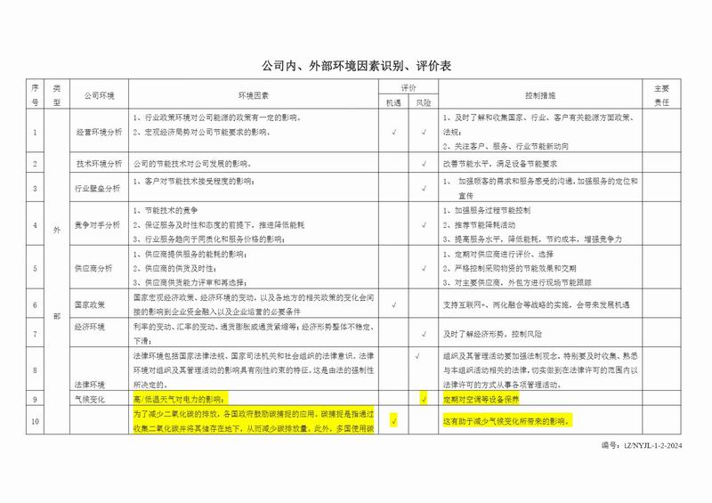 公司內(nèi)外部環(huán)境識(shí)別評審表